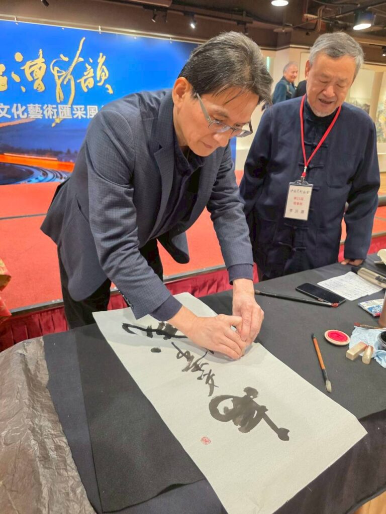李沃源理事長更即席吟唱林博士揮毫作品《細水長流》,博得全場如雷掌聲,並表示:「這是我所見最精彩的書法演講。」多位藝術家亦將林博士即興揮毫墨寶視為「此行最大的收穫」。