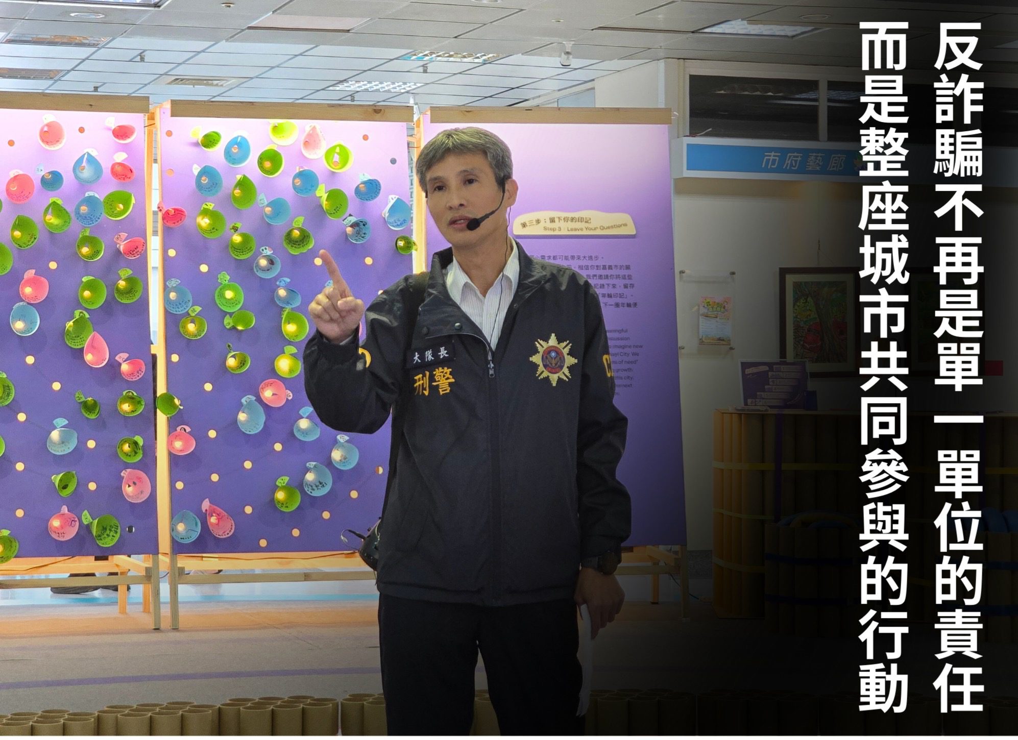 詐騙案件不僅造成個人財物損失,更對家庭與社會造成長遠影響。近年詐騙手法不斷翻新,常利用投資、感情或假冒公部門等話術,鎖定民眾在緊急、焦慮或孤立的狀態下誘使匯款。透過本次策展結合宣導,希望讓市民理解,反詐騙不再是單一機關的責任,而是整座城市需要共同參與的行動。