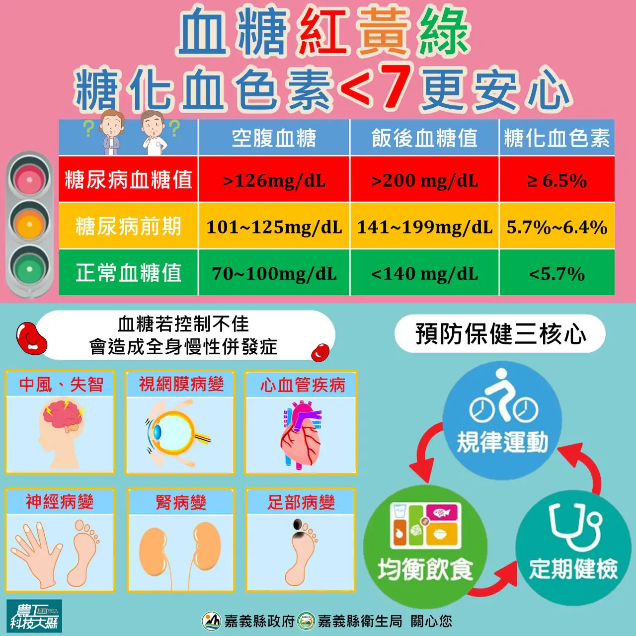 嘉義縣衛生局提醒,「預防勝於治療」,糖尿病與不良飲食及生活習慣息息相關,若出現多吃、多喝、多尿、體重減輕等「三多一少」症狀,或經常感到疲勞,應提高警覺,儘速就醫評估。