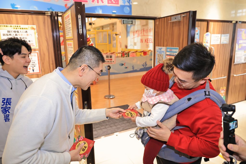 活動現場氣氛熱鬧,謝國樑不時蹲下與小朋友擊掌互動,關心孩子們「好不好玩?」、「最喜歡哪一項設施?」,也與家長交流使用心得,了解實際需求,現場洋溢濃厚年節喜氣與親子歡笑聲。