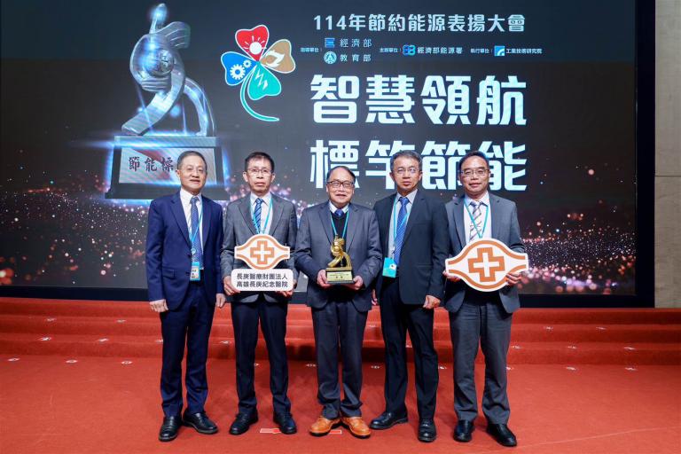 長庚醫療體系持續以層峰領軍、制度化推動節能創新,展現醫療機構在智慧節能與永續發展上的標竿實力。今年由高雄長庚紀念醫院代表參加經濟部「節能標竿獎」競賽,再度以卓越的節能改善成果榮獲最高榮譽「節能標竿金獎」。近年來,長庚醫療體系五度參賽,累計奪下四金一銀的亮眼成績,成為國內醫療體系中最具代表性的節能典範。經濟部於2025年年末假台北遠東香格里拉飯店舉辦「節能標竿獎表揚大會」,由長庚醫療體系行政中心潘延健總執行長、羅吉均執行長及歐國松處長代表出席領獎。