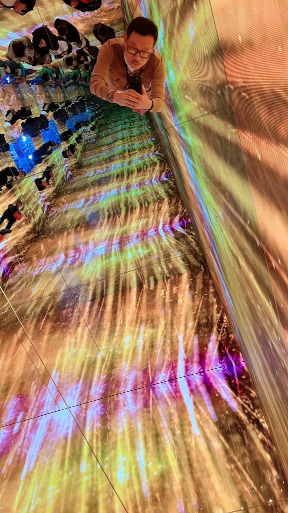 走進色彩飽和到近乎溢出的空間,光影、投影、倒影彼此交錯,現實與幻覺的邊界被徹底抹去。這個「花花世界」看似繁盛到極致,但也正因為過於燦爛,本身就已預告了凋零。