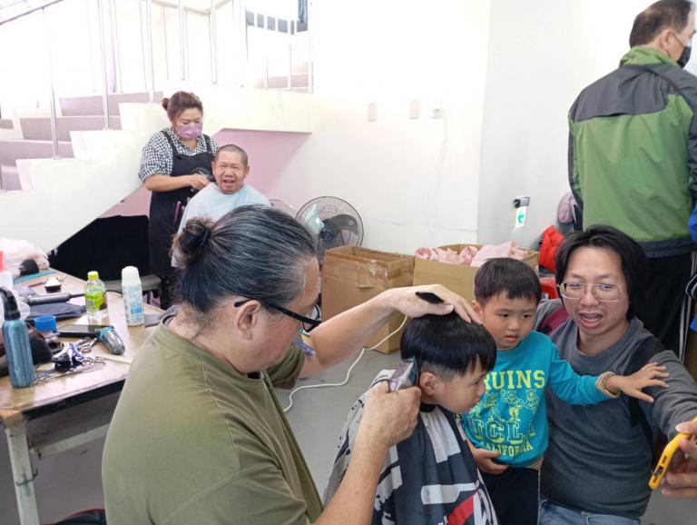 ▲理髮師現場義剪。(圖╱記者孔亮云攝)