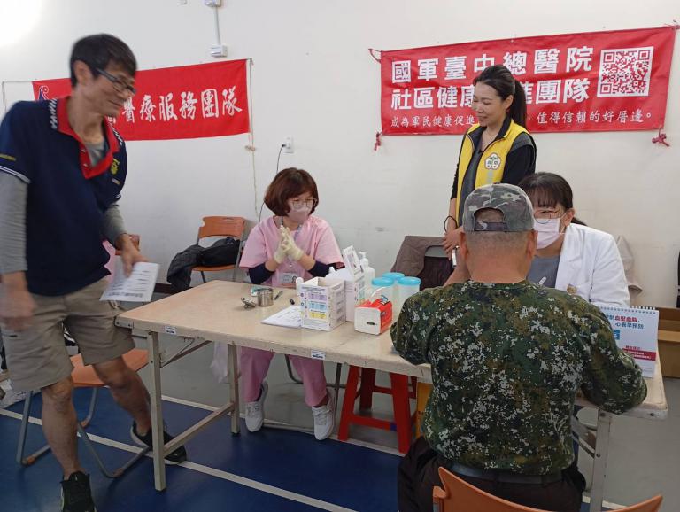 ▲803國軍臺中總醫院與高堂中醫聯合診所在現場提供完整的基礎健檢,包括血壓量測、體重與BMI評估、血糖與膽固醇等抽血篩檢。(圖╱記者孔亮云攝)