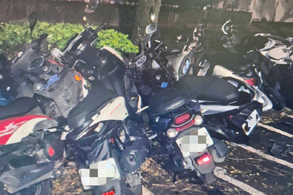 另在二十七日零時,中壢交警局交通中隊再度獲報,指位在中壢區高鐵南路一段有交通事故發生,員警抵現場了解,是名現年二十二歲蘇姓男子駕駛自小客車沿高鐵南路一段往高鐵站方向直行時,向右偏移將停放機車停車格內的二十七部機車撞倒,現場無人受傷,但蘇姓男子在事故後就先行離開現場,警方表 ,將通知駕駛人蘇男到場說明並依道路交通管理處罰條例開罰。