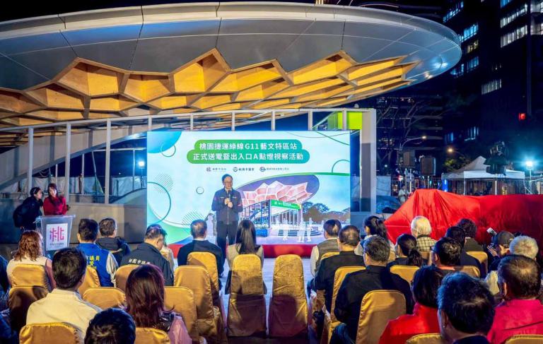 桃園市長張善政今(29)日晚間前往桃園區,出席「桃園捷運綠線G11藝文特區站正式送電暨出入口A點燈活動」。張市長表示,G11站正式送電點燈,其意義代表電力系統已到位,列車可實際進站展開測試,也代表捷運綠線由坑口站至藝文特區站的優先通車路段,朝明(115)年底通車目標再向前跨出關鍵一大步,市府將持續以高度責任感,推動捷運綠線如期如質完工。