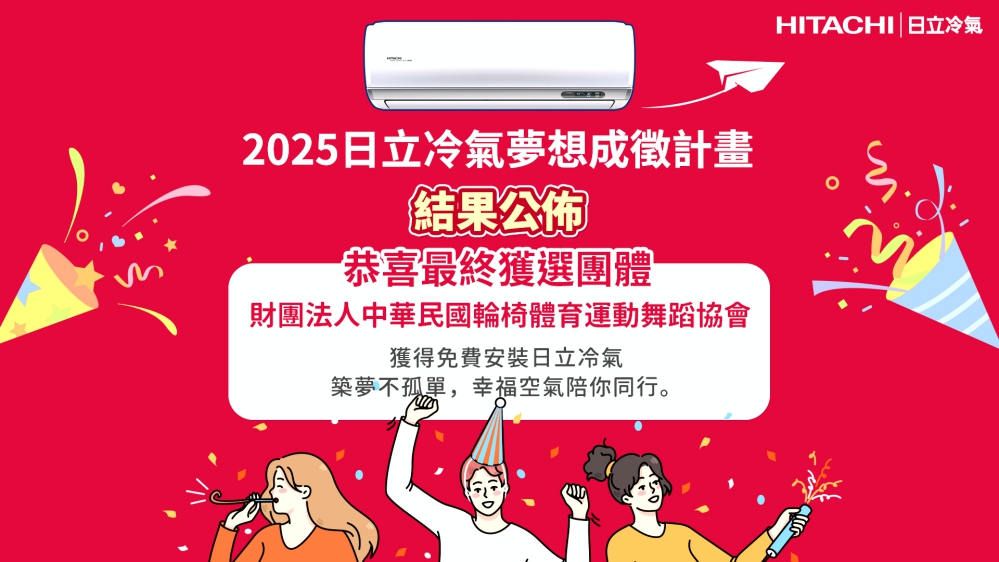 結合12位專業評審的現場面審評分,加上歷時一個半月的全民網路票選結果,2025 年日立冷氣《夢想成徵計畫》最終由財團法人中華民國輪椅體育運動舞蹈協會所提出之「輪椅舞者幸福空間計畫」脫穎而出,獲得最高總分。