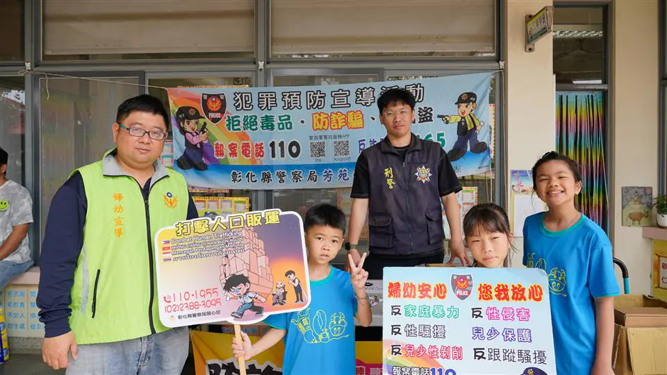為了讓低年級的學童也能輕鬆吸收自我保護的觀念,芳苑分局宣導團隊特別精心設計了符合兒童視角的互動內容。在「婦幼安全」方面,教導學童認識身體界線、勇敢對不當碰觸說「不」;在「交通安全」上,透過口訣提醒孩子們過馬路要「停、看、聽」;同時也用說故事的方式,將「反詐騙」及「防制人口販運」的觀念向下扎根,提醒學童不隨便拿陌生人的東西、不輕易透露個人或家庭資訊。