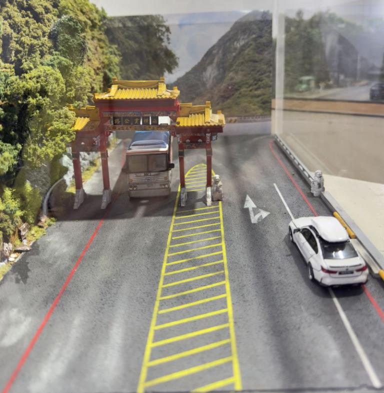▲李緯群製作的太魯閣牌樓。(圖/記者蔣彤雲攝)