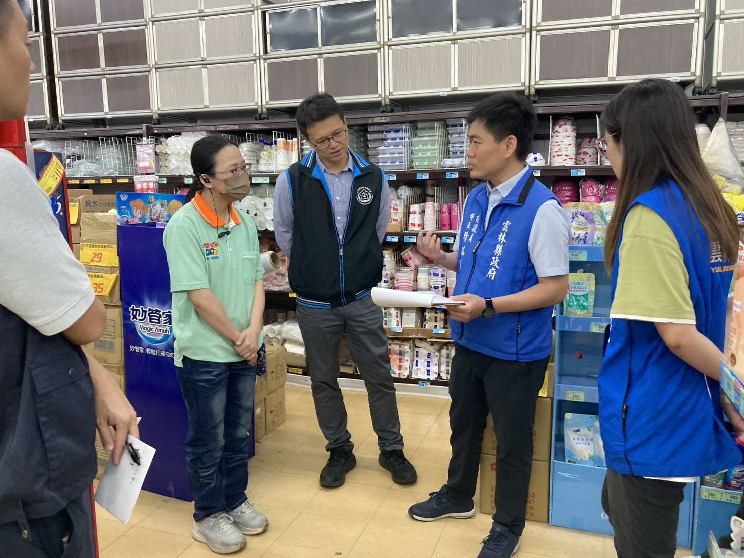為落實民生塑膠用品源頭管理並強化市場輔導,雲林縣政府今(3)日聯合臺灣雲林地方檢察署,會同法務部調查局雲林縣調查站及本縣警察局刑事警察大隊,於斗六及虎尾地區辦理聯合訪視行動,針對一般量販百貨通路進行實地訪查與政策宣導,提升市場透明度與供應穩定性。
