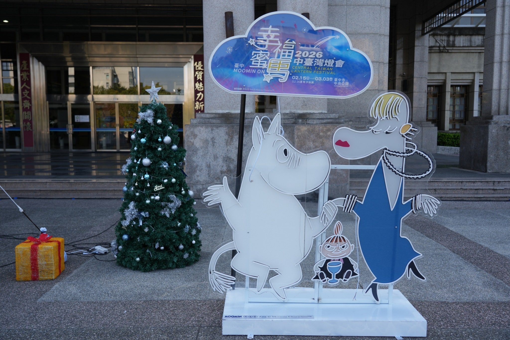 2026中台灣燈會將於2月15日小年夜在台中市中央公園璀璨登場,為迎接嶄新的一年,台中市政府水利局在豐原陽明市政大樓精心佈置全球知名IP姆明家族(Moomin)主題燈飾,今(5)晚點燈正式亮相。水利局指出,活動除延續去年12月17日打造的「光之河谷‧幸福延續」冬季光環境燈區外,現場更加入3公尺高的巨型姆明氣模及多款家族主題燈飾,並結合整點飄雪效果與光影裝置,營造濃厚北歐風情的「飄雪森林」,邀請市民朋友走進台中豐原,與姆明合影打卡、迎接新年。