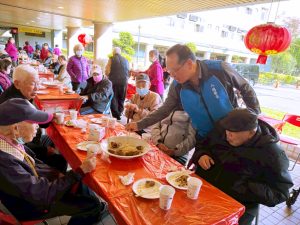活動中,陳寶民局長也獻唱新年祝福歌曲,與長輩們互動同樂,現場笑聲不斷、氣氛熱絡。長輩們對市府的用心關懷表達感謝,紛紛表示能在新春前夕與大家齊聚一堂、共享佳餚,感到格外溫暖與開心。