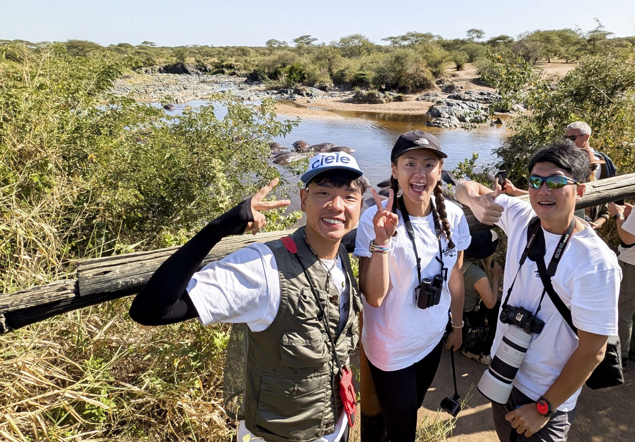 台灣隊抵達坦尚尼亞後,先經歷長達20多小時飛行,笑說:「辛巴我來了!」導遊安排獵遊行程作為身體適應高原的第一站,登山作家雪羊也表示,「先獵再爬」是最佳組合,能讓大家更快適應環境。旅途中,他們近距離看見非洲五霸(Big Five):象、獅、豹、水牛、犀牛,其中坦尚尼亞僅剩約80隻犀牛,被阿傑形容為「大海撈牛」。主持群驚呼連連,蕭俊文表示:「非洲人好可愛,對到眼時都會跟你打招呼!」Max則首次看到長頸鹿過馬路,大喊:「好優雅!」而雷艾美不敢相信猛禽蛇鷲、疣豬、斑馬、羚羊近在眼前:「怎麼可以這麼chill!」阿傑看見大象群時哽咽:「親眼看到這畫面,完全講不出話。」文姿云則是看到象群保護小象時眼眶紅了:「那畫面太溫暖!」甚至在休息吃飯時,大象直接走到眼前,Max驚呼:「可能一生只有這一次!」八弟則笑說:「吃飯配大象,沒有比這個更狂的。」途中也遇到意外爆胎的驚險,卻意外讓大家能用雙腳踏在草原上欣賞非洲最壯麗的黃昏景色。