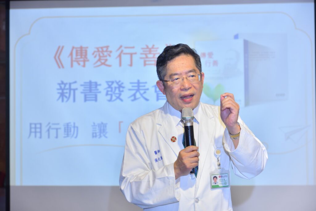 圖說:馬偕醫院《傳愛行善》新書發表會,馬偕紀念醫院總院長張文瀚致詞表示,醫療過程透過文字將不再冰冷,而是轉化成最實際的溫暖行動。