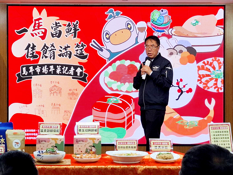 迎接馬年春節,台南市市場處今(22)日舉行馬年市場年菜記者會,由市長黃偉哲親自介紹「一馬當鮮,佳餚滿筵」年菜,邀請民眾以實惠價格輕鬆圍爐過好年。記者會現場並展示多道色香味俱全的年菜,香氣撲鼻讓黃偉哲及參與來賓忍不住直呼食指大動!