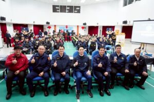 市長致詞時表示,提出三點提醒,第一、不要鬆懈,堅守崗位並提高警覺,第二、料敵從寬,禦敵從嚴,要嚴謹面對每個突發狀況,第三、不要三不管,寧可撈過界,務必強化與其他單位的橫向聯繫,甚至和中央的垂直聯繫。希望同仁注意自身安全,嚴正執法,絕不寬貸,只要依法執行公權力,市長全力相挺。對於任何犯罪行為,絕不護短,絕不手軟,感謝市府所有的同仁,也祝福各位一切順心,新的一年一切順利,祝福大家,謝謝。
