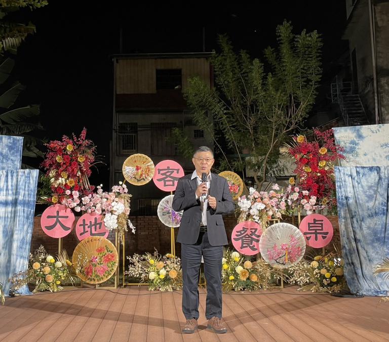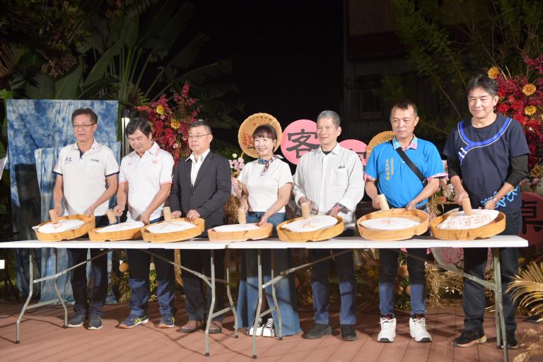 2025客家大地餐桌餐宴活動於22日晚間在高雄美濃菸仕物所戶外舉行。由客家委員會輔導補助,高雄市政府客家委員會與財團法人高雄市客家文化事務基金會共同策劃的「品味右堆 文化上桌」餐宴開桌儀式一開始即成為全場焦點,受邀貴賓同步舉槌敲開「好運敲敲魚」的外層鹽殼,象徵以土地當季旬味開啟今晚的餐桌旅程。