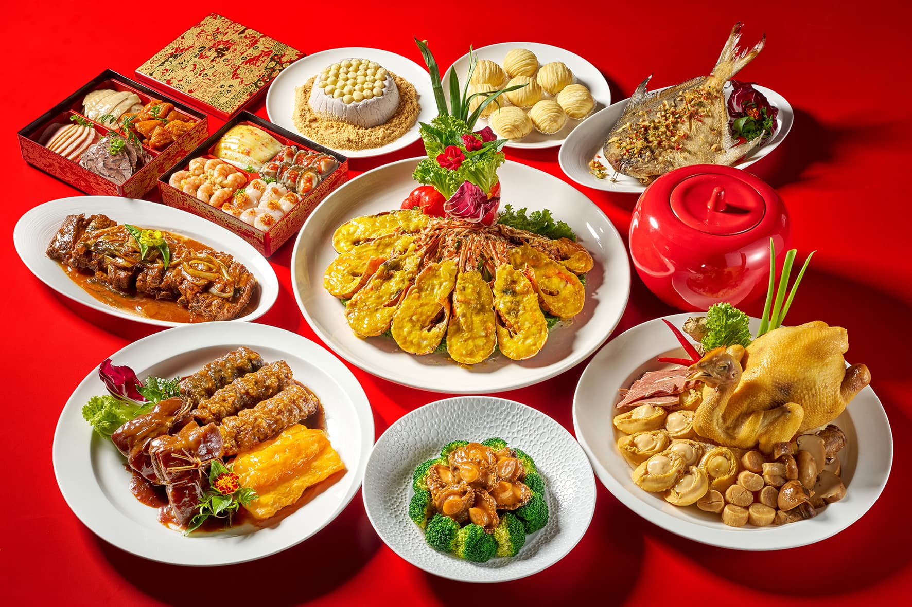 以粵式海味著稱的珍珠坊,今年主推六人份「高陞套餐」,內含福祿壽五福大拼盤、蒜香樹子蒸龍蝦、御品珍膳干貝燉雞、清蒸龍虎斑、珍鮑扒花菇等八道菜餚,另同步開賣的「步步高升吉祥禮盒」,嚴選港式乾腸與臘腸製作的手工臘味蘿蔔糕,油煎或清蒸皆香氣濃郁,是老饕年年必買的經典伴手禮。