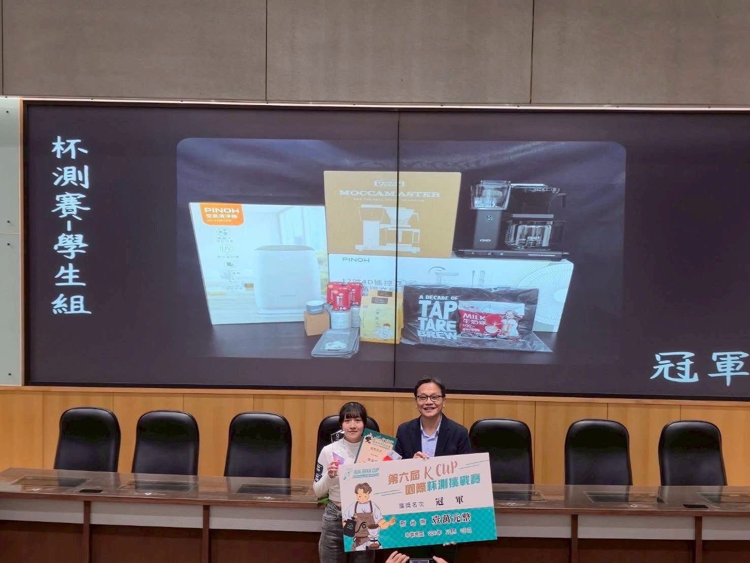 嘉南藥理大學食品科技系陳筑婷同學,日前參加「2025年第六屆K Cup 國際咖啡挑戰賽」,憑藉著精準的味覺與嗅覺,一路過關斬將,以全對「大滿貫」優異成績,勇奪杯測組冠軍,展現了嘉藥食品系在感官科學教育上的卓越成果。