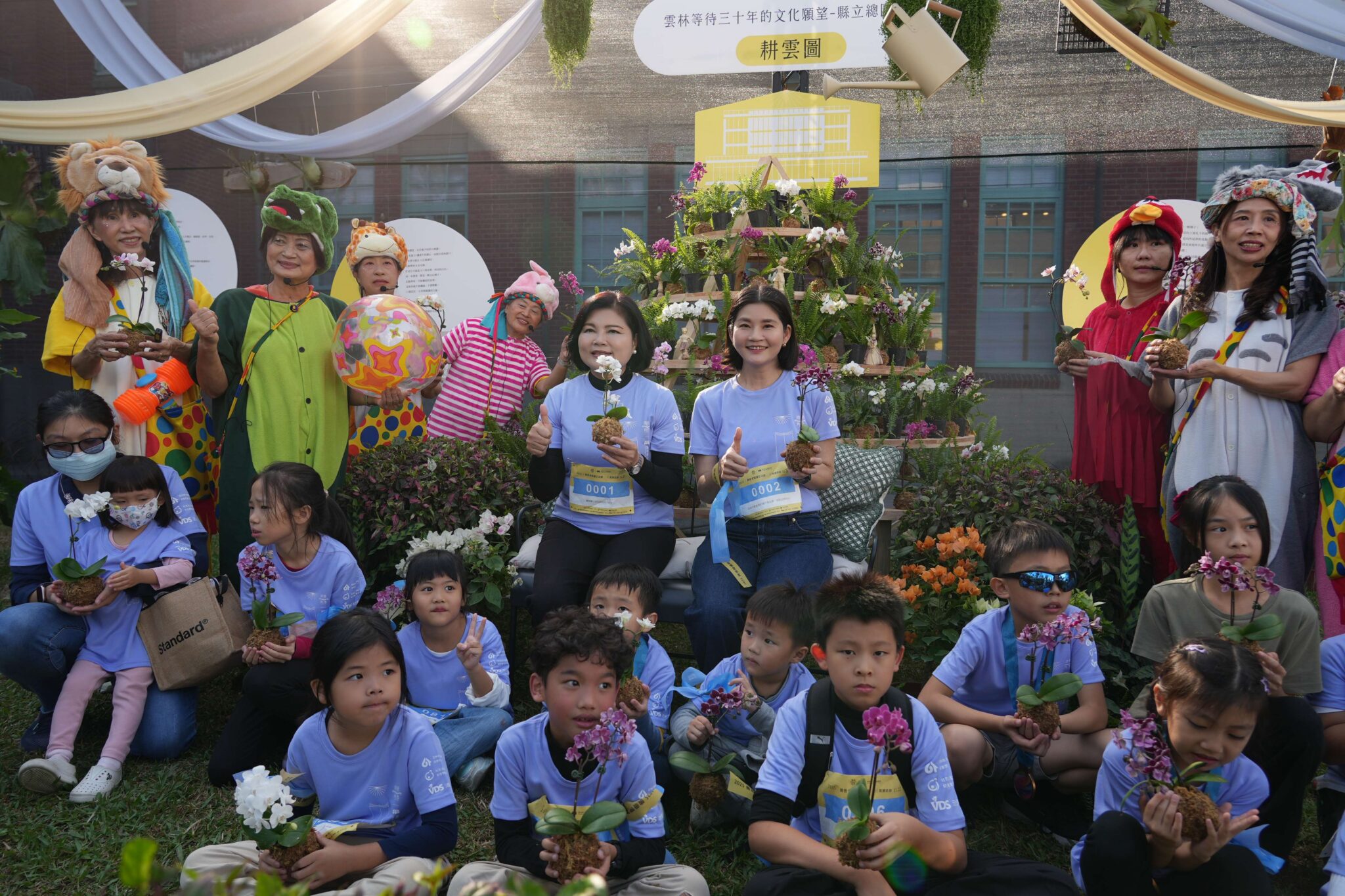 縣長張麗善與小朋友種下雲林縣花「蘭花」花苗,種下傳承知識、希望的種子。
