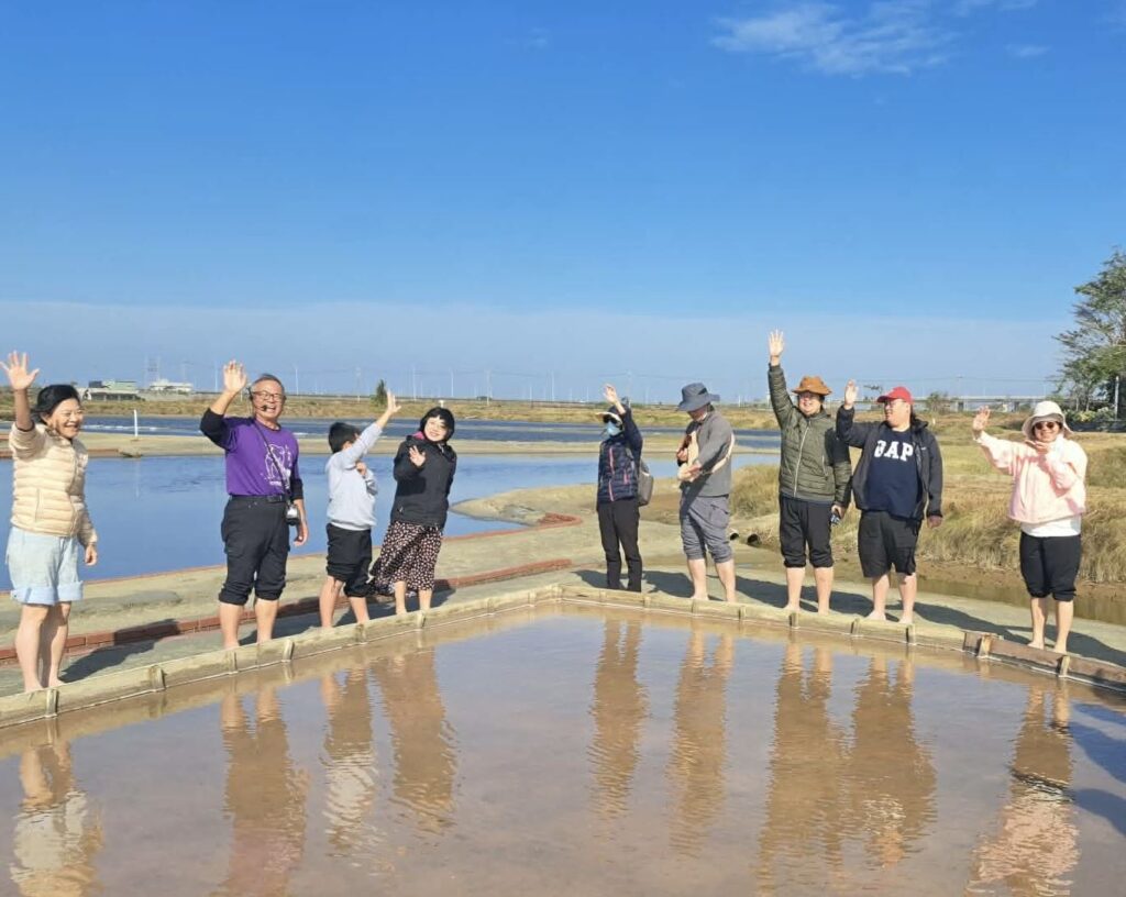 活動從「鹽田導覽」揭開序幕,參與者在導覽人員陪同下走入全臺少數仍保留傳統天日曬鹽工法的鹽場,親眼見證鹽花結晶的過程,並體驗鹽工茶的獨特風味。「第一次在鹽田喝茶,好像連空氣都變鹹甜鹹甜的!」民眾笑說。