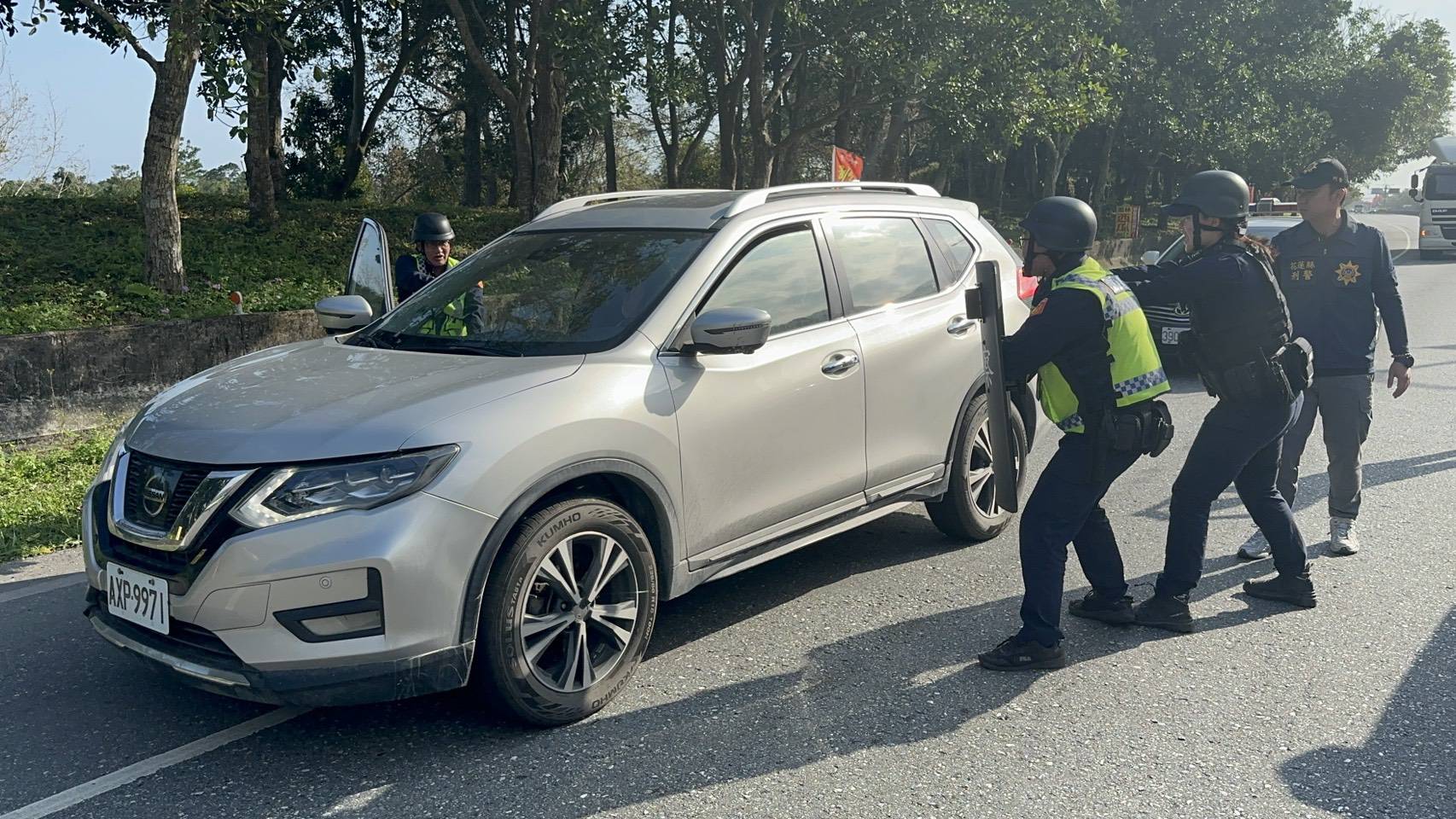 線上警力依據通報內容展開追緝,並在轄區重要路段設置攔截圍捕崗哨,形成包圍網,最終在懷恩橋設置攔檢點,成功攔停嫌疑車輛,順利將兩名歹徒逮捕歸案,演練圓滿完成。