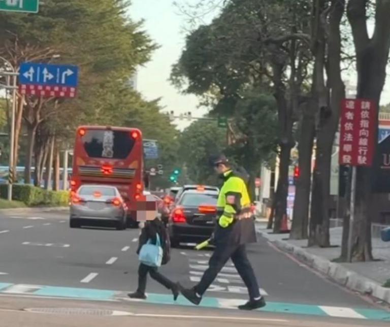 ,對年幼的孩子而言,每一次過馬路都是一場考驗,執勤員警林冠廷見狀,主動走到孩子身旁,以身體作為最直接的防線,細心觀察來車動向,確認安全後再引導孩子通行,這樣的舉動,看似平凡,卻在繁忙的日常中,為孩子築起最溫暖、也最安心的保護。