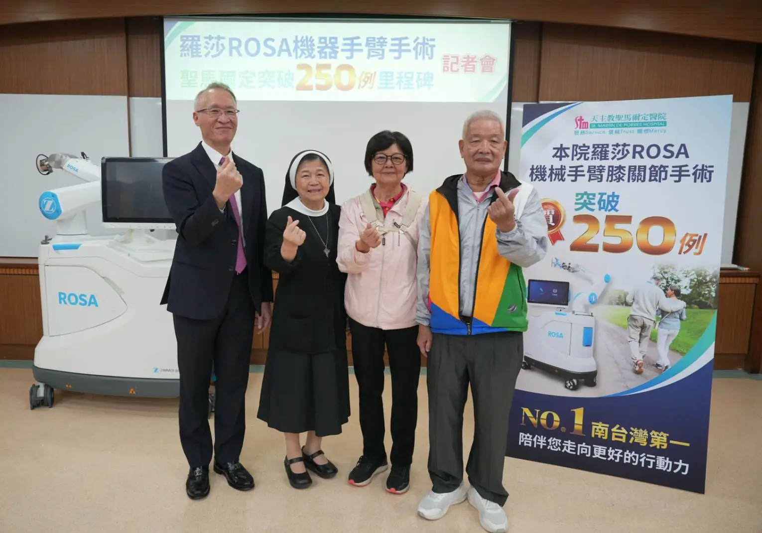 (記者 邱嘉琪 嘉義報導)聖馬爾定醫院持續深耕精準醫療領域,自2018年完成院內首例MAKO半膝人工關節置換手術以來,累積豐富臨床經驗,並於2023年引進 ROSA 機械手臂系統,應用於全人工膝關節置換手術,至今已累計完成超過250例,創下南台灣各級醫院中手術量最多的亮眼紀錄,院方於23日舉辦「機械手臂系統關節置換 突破250例」記者會,展現智慧醫療成果。