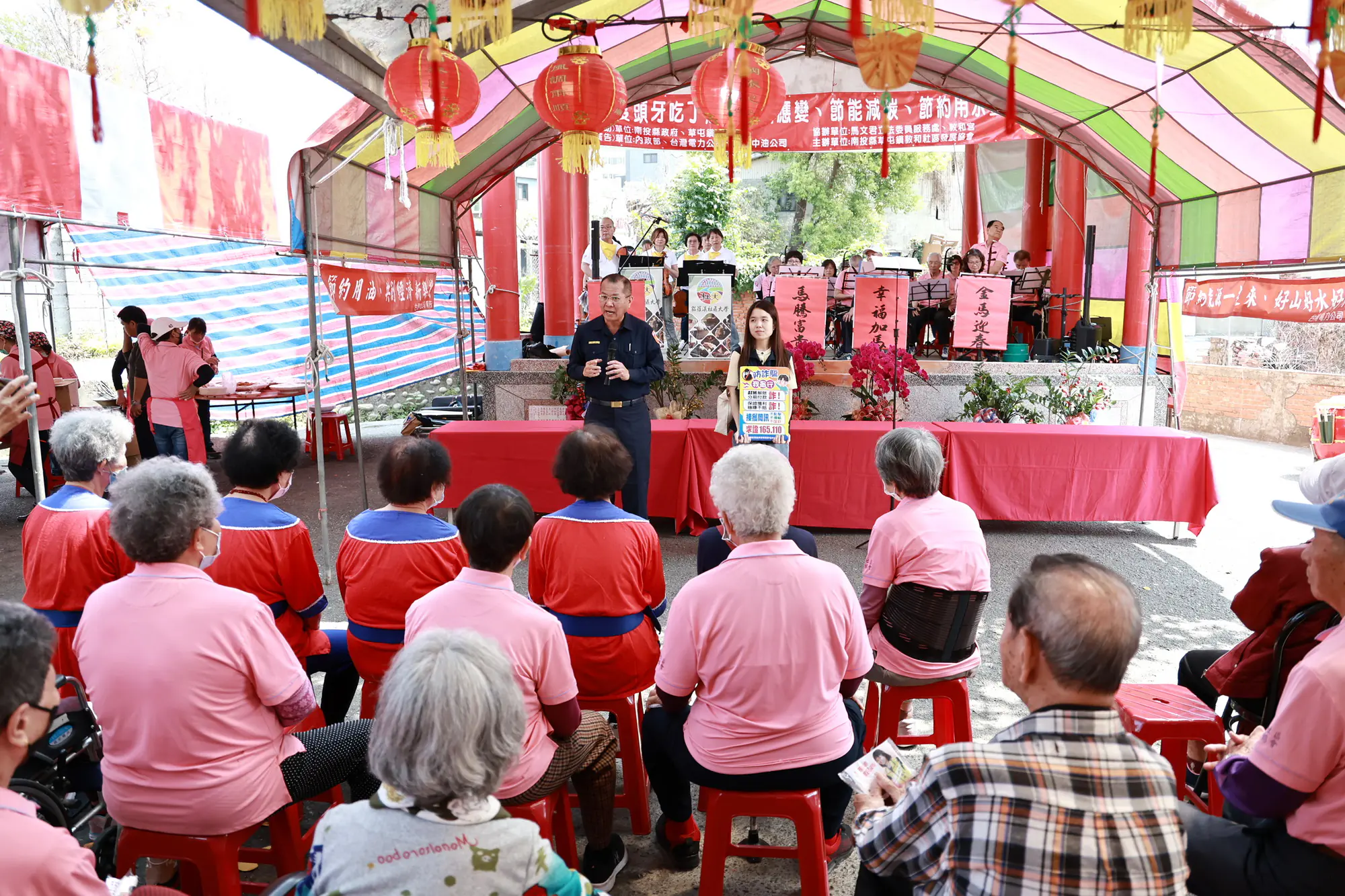 許縣長致詞時表示,很高興能參加社區的公益宣導活動,能充分感受到社區鄉親的熱情,尤其社區10多年來都與福德廟結合辦理頭牙吃丁酒活動,祈求伯公庇佑,並凝聚社區向心力,齊聚各界愛心與力量,也達到政策宣導的功效。